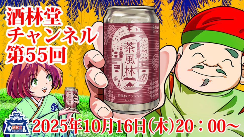 2025/10/16に配信された酒林堂チャンネル『茶風林の呑んでばかりで何が悪い!」第55回のイラストを描かせていただきました。